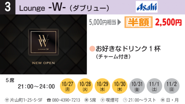 2025年参加店舗 Lounge -W-(ダブリュー) suitabar https://suitabar.com/wp-content/uploads/2020/11/metaslider_sp20200915.png 吹田バル